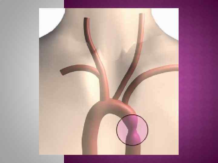 89 -98% Ко располагаются на участке от левой пкл артерии до ОАП или сразу ниже ОАП (перешеек Ао) 3 -е место по частоте встречаемости у нр после ДМЖП и ТМС Часто сочетается с другими пороками(53% с ДМЖП, 14% пороки Ао и 8% МК). Сопутствующую гипоплазию дуги Ао (между брахиоцефальным стволом и левой пкл артерией) находят у 65% пациентов Гемодинамика: в нижней половине туловища кровоток зависит от проходимости ОАП, чз который поступает кровь из ЛА (дуктус-зависимый системный кровоток), либо от наличия коллатералей (от пкл ветвей, внутр грудной арт, сосуды лопатки, позв арт)