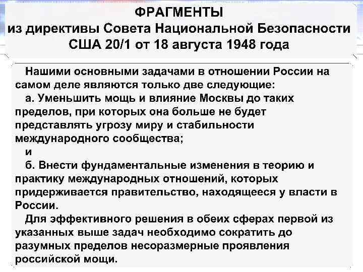 ФОТОКОПИЯ ДИРЕКТИВЫ СОВЕТА НАЦИОНАЛЬНОЙ БЕЗОПАСНОСТИ США 20/1 от 18 августа 1948 года