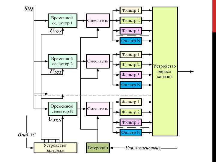 Это обеспечивается при F*Д= (k+0, 5)FПОВТ, где k - целое число. При этом суммарная полоса пропускания гребенки фильтров должна быть меньше расстояния между соседними лепестками спектра (т. е. меньше FПОВТ)).