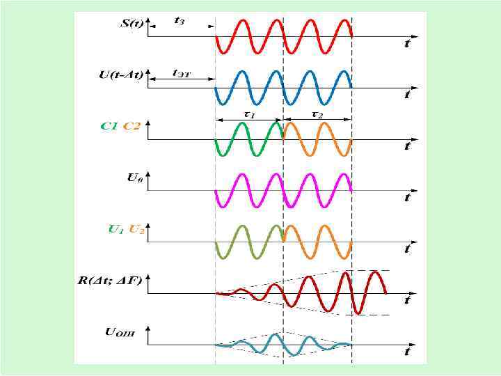 Изобразить радиолокационные сигналы во временной и частотной области (непрерывное колебание бесконечной длительности и одиночный радиоимпульса). Изобразить радиолокационные сигналы во временной и частотной области (одиночный видеоимпульс и импульс бесконечно малой длительности). Изобразить радиолокационные сигналы во временной и частотной области (когерентная пачка радиоимпульсов). Изобразить схему корреляционного приемника. Дать определение когерентного сигнала. В чем выражается принцип неопределенности в радиолокации. Требования к зондирующему сигналу. Требования к разрешающей способности и точности измерений. Изобразить схему и пояснить принцип корреляционно-фильтровой обработки сигнала. Изобразить схему и пояснить принцип определения скорости цели в приемнике осуществляющем корреляционно-фильтровую обработку сигнала. Изобразить схему и пояснить принцип определения дальности до цели в приемнике осуществляющем корреляционно-фильтровую обработку сигнала. Неоднозначность измерения скорости. Слепая скорость. Причины