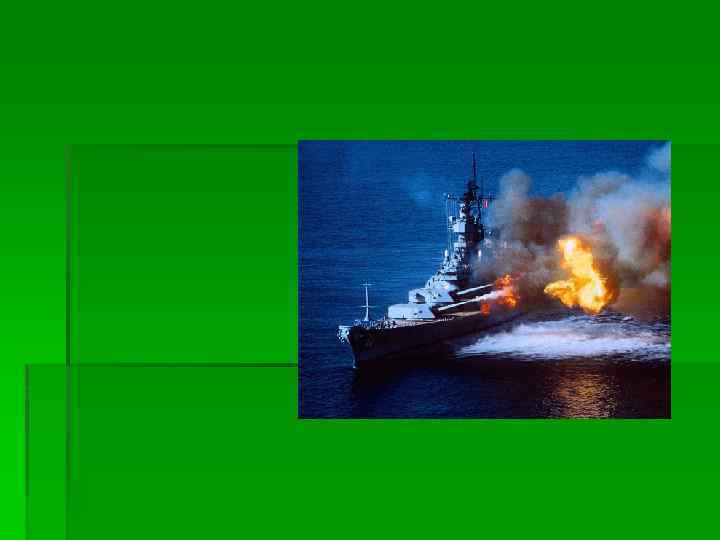 корабле (например, на линкоре) находятся 8 -10 орудий крупного калибра (305 - 406 мм) – орудия главного калибра; 12 – 20 орудий среднего калибра (120 – 130 мм), 80 – 140 зенитных пушек.