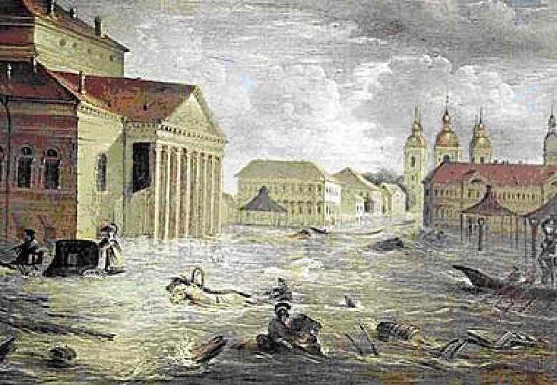 А. С. Пушкин …И вот • … Редеет мгла ненастной ночи И бледный день уж настает… Ужасный день! Нева всю ночь Рвалася к морю против бури, Не одолев их буйной дури… И спорить стало ей невмочь… Поутру над ее брегами Теснился кучами народ, Любуясь брызгами, горами И пеной разъяренных вод. Но силой ветров от залива Переграждённая Нева Обратно шла, гневна, бурлива, И затопляла острова!. . . Погода пуще свирепела, Нева вздувалась и ревела, Котлом клокоча и клубясь, И вдруг, как зверь остервеняясь, На город кинулась. Пред нею Все побежало, все вокруг Вдруг опустело – воды вдруг Втекли в подземные подвалы, К решеткам хлынули каналы, И всплыл Петрополь, как тритон, По пояс в воду погружен.
