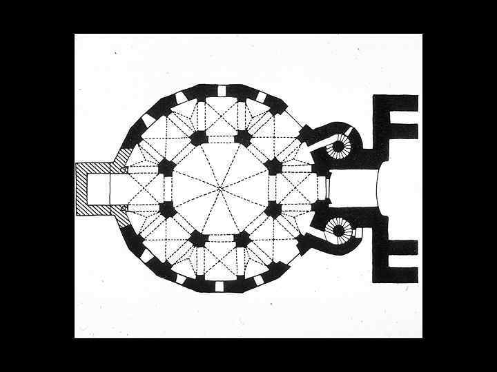 Аахенская капелла, арх. Одо из Метца. 792 -805. Храм был призван наглядно воплотить притязания Карла на преемственность по отношению к римским и равеннским императорам.