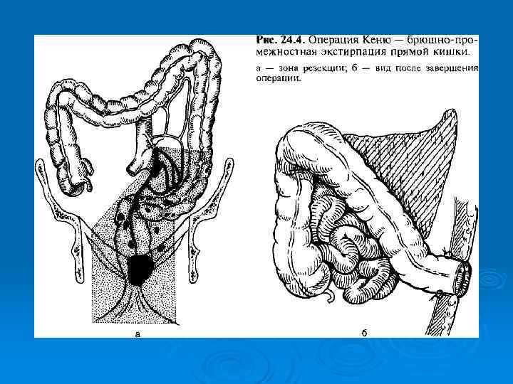 При раке прямой кишки наиболее часто используют: брюшно-промежностную экстирпацию прямой кишки, Ø переднюю резекцию прямой кишки, Ø брюшно-анальную резекцию прямой кишки с низведением сигмовидной кишки, Ø обструктивную резекцию (операцию Гартмана). Ø