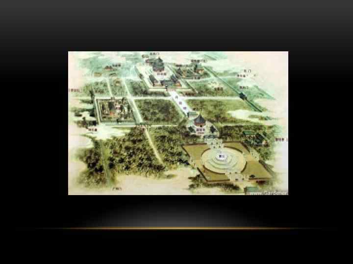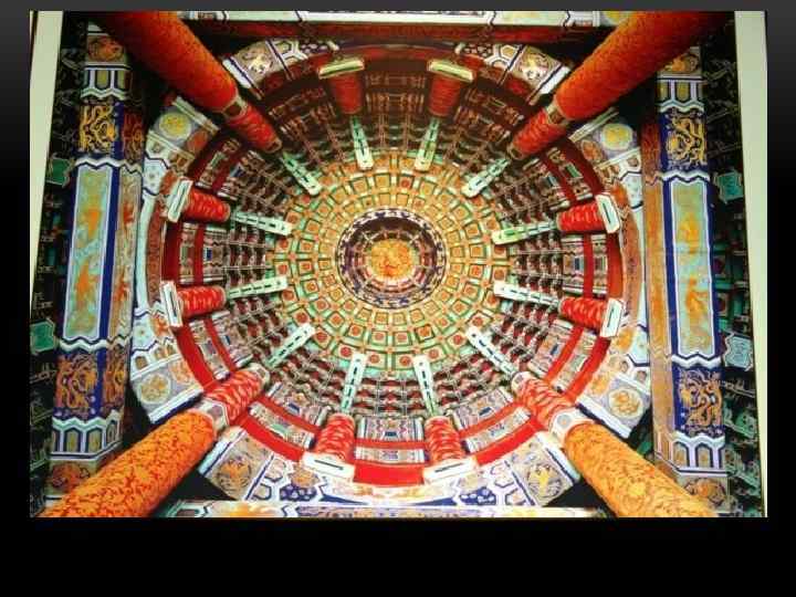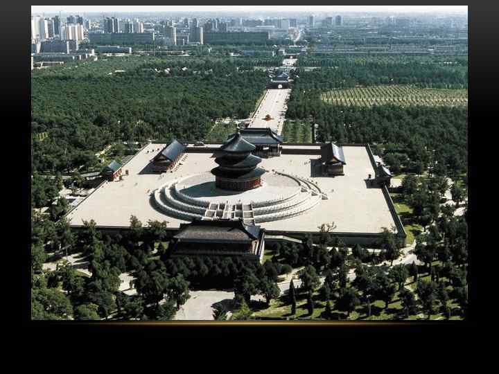 • Основными сооружениями на его территории считают: • алтарь Неба; дворец Чжайгун (Дворец уединения); • зал Жертвенных молитв; • зал Небесного Свода.