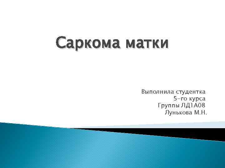 Саркома матки Выполнила студентка 5 -го курса Группы ЛД 1 А 08 Лунькова М. Н.