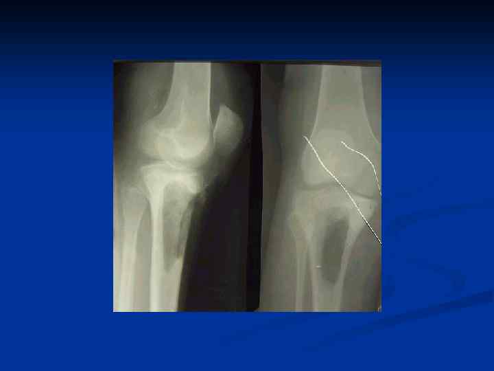 Остеосаркома - это высокозлокачественная опухоль кости, n Около 80% остеосарком возникают в дистальной части бедренной кости n Встречается в 4 раза чаще у лиц мужского пола n Составляет 45% от всех первичных злокачественных опухолей костей n Отмечается бимодальный пик во 2 -3 декаде и 6 декаде жизни n