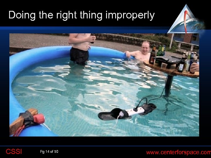 Doing the right thing improperly Desired outcome Grill some burgers at pool party Chosen Approach Could lead to unintended consequence CSSI Pg 14 of 50 www. centerforspace. com