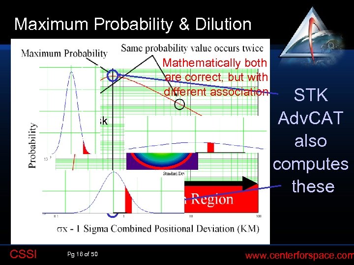 Maximum Probability & Dilution Q Mathematically both are correct, but with different association Low Risk Poor Data Quality CSSI Pg 16 of 50 STK Adv. CAT also computes these www. centerforspace. com