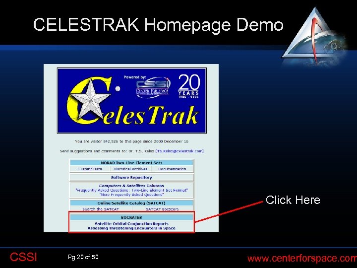 CELESTRAK Homepage Demo Q Click Here CSSI Pg 20 of 50 www. centerforspace. com