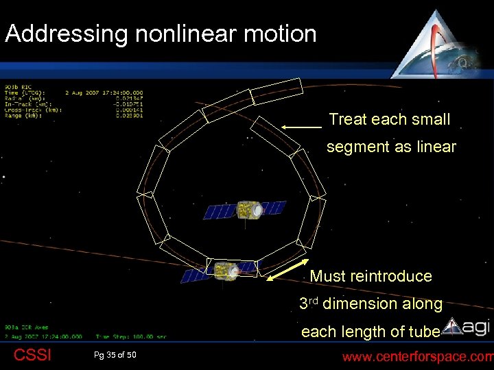 Addressing nonlinear motion Q Treat each small segment as linear Must reintroduce 3 rd dimension along each length of tube CSSI Pg 35 of 50 www. centerforspace. com
