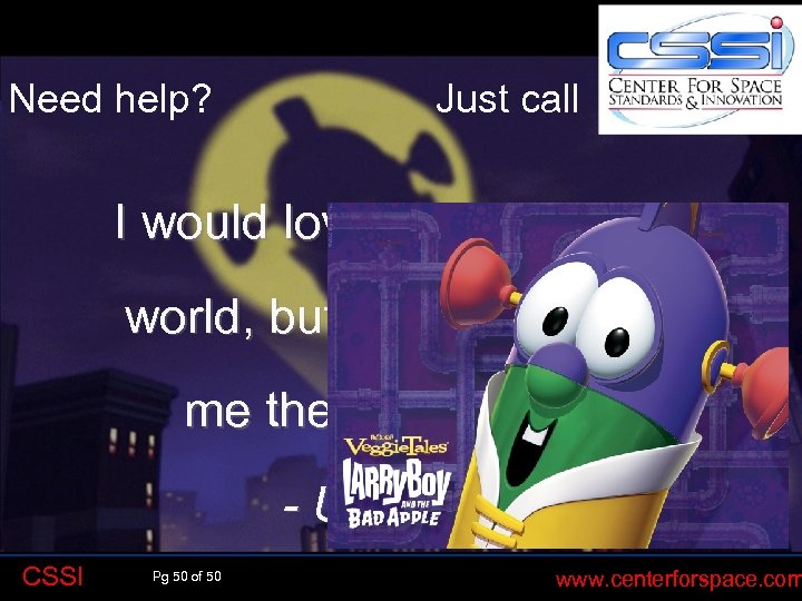 Q Need help? Just call I would love to change the world, but they won't give me the source code - Unknown CSSI Pg 50 of 50 www. centerforspace. com