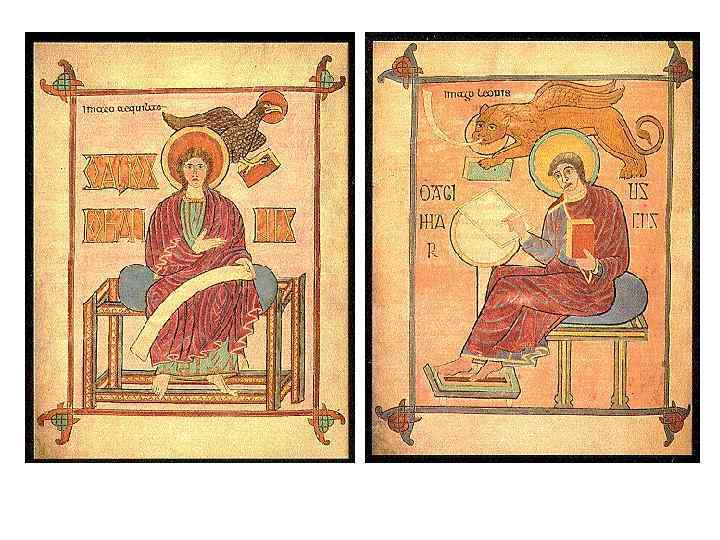 The Book of Dimma (Евангелие из Диммы) • • VIII в. , аббатство Роскри (Roscrea, графство Типперари, Ирландия), основанное Св. Крононом Писец Димма Мак. Натхи (подписи в конце каждого Евангелия), впоследствии – епископа Коннора Dublin, Trinity College, MS. A. IV. 23 Инициалы, три Евангелиста, один символ Евангелиста