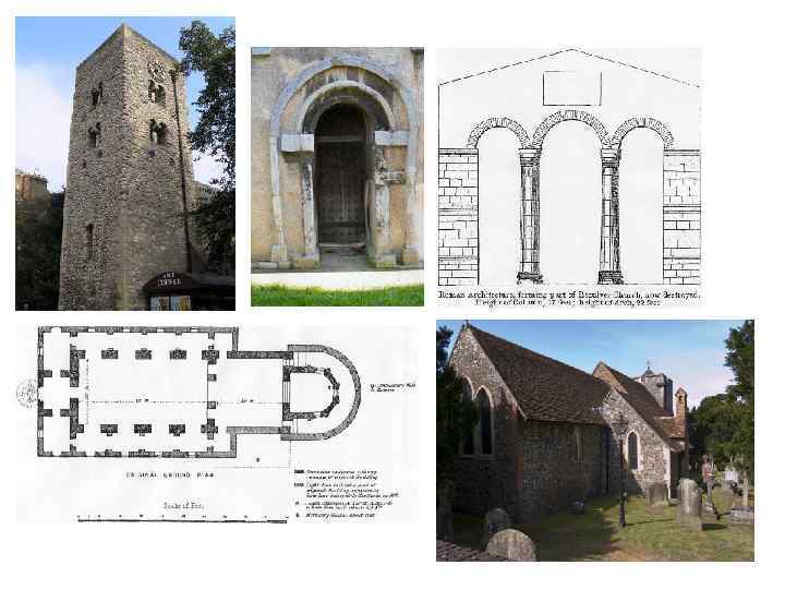 Англо-саксонская архитектура VII в. • All Saints' Church, Brixworth, Northamptonshire • St Martin's Church, Canterbury (7 th century nave with parts of possible earlier origin) • Old Minster, Winchester (648) (only foundations remain, but are marked out) • St Peter-on-the-Wall, Bradwell-on-Sea, Essex (Roman building adapted 654) • Ripon Cathedral crypt (circa 670) • Hexham Abbey crypt (674) • Monkwearmouth-Jarrow Priory, Northumberland (c. 675) • Escomb Church, County Durham (c. 680) IX-X вв. • St Wystan's church, Repton, Derbyshire (crypt c. 750, chancel walls ninth century) • St Mary's Priory Church, Deerhurst, Gloucestershire (c. 930) • All Saints' Church, Earls Barton, Northamptonshire • St Laurence's Church, Bradford-on-Avon, Wiltshire XI в. • Greensted Church, Essex (1013 with oak palisade walls) • Stow Church, Lincolnshire (c. 1040 with a small part surviving from 975) • St Michael at the Northgate, Oxford (c. 1040) • St Nicholas' Church, Worth, West Sussex (c. 950 - 1050) • Church of St Mary the Blessed Virgin, Sompting, West Sussex (c. 1050) • Odda's Chapel, Deerhurst, Gloucestershire (1056)