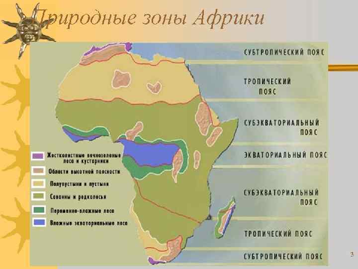 Саванны Африки n n n Древесный ярус: одиночно стоящие деревья; Кустарниковый ярус: кустарники в 1, 5 раза выше травостоя, много колючих форм; Травянистый ярус: злаки, слоновая трава, осоки.