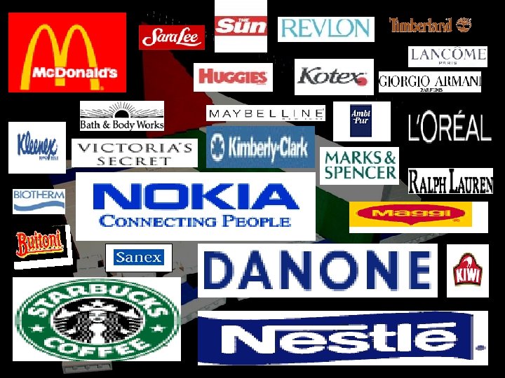 - Nike (pernah tertulis kata "Allah" dalam sebuah produknya), Adidas, Kate dan Calvin Klein - Peralatan elektrik : Power, Union Air, Clifinitour , Admiral, Harmony, Alaska, Duncan, Motorola, Alcatel , Nokia - Bateri: Everydy , Energizer dan Doorsil - Kenderaan: Ford, Chrysler, Hammer, Chevrolet, Puck - General Electric