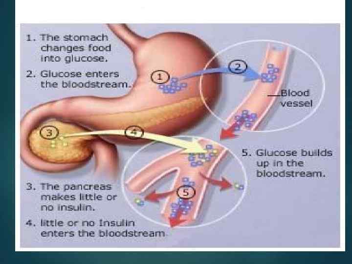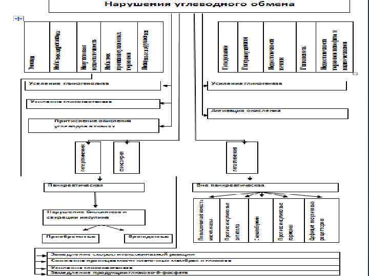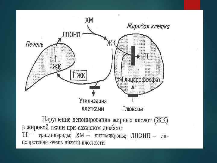 В результате этого развиваются первичные и вторичные нарушения. Вторичные Первичные. Замедление синтеза гликогена Снижение толерантности к глюкозе Замедление скорости глюконидазной реакции Замедление синтеза белка Ускорение глюконеогенеза в печени Замедление синтеза жирных кислот Глюкозурия Гипергликемия Ускорение высвобождение белка и жирных кислот из депо Нарушается фаза быстрой секреции инсулина в β-клетках при гипергликемии.