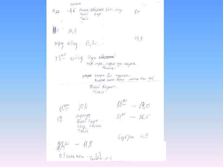 • Как измерять сахар крови дома? • Если Вы принимаете от диабета таблетированные препараты или таблетированные + продленный инсулин, то после того, как подобрали дозировки сахароснижающих лекарств, Вы измеряете сахар крови с записью в дневнике – не реже 1 раза в 7 -10 дней за весь день: • -до завтрака и через 2 часа, • -до обеда и через 2 часа, • -до ужина и через 2 часа, • -перед сном – • с одним вопросом: «ПОПАЛ ЛИ Я В НОРМУ? » • Какая у Вас должна быть норма? Норма сахара крови до еды - до …… ммоль/л, через 2 часа после еды - до …. . ммоль/л, перед сном – от 6 -7 ммоль/л. • Если не попадаете в норму – повторно приходите к эндокринологу.