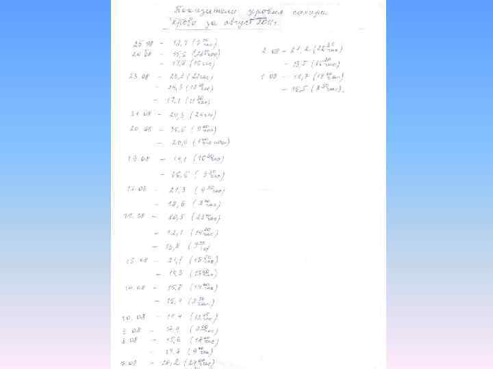 Оральный тест толерантности к глюкозе (ОТТГ) • Последний прием пищи – за 12 час до пробы • 8. 00 - сахар крови натощак • 8. 05 - выпить сироп: 75 грамм сухой глюкозы + 300 мл воды, сидя, за 5 мин (детям: 1, 75 г/кг) • 10. 05 – сахар крови через 2 часа от принятой глюкозы • Не ходить, не курить, нельзя на фоне острых состояний, при циррозе • В теч. 3 -х дней обычное питание (углеводы – более 150 г/сут)