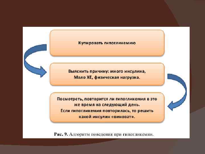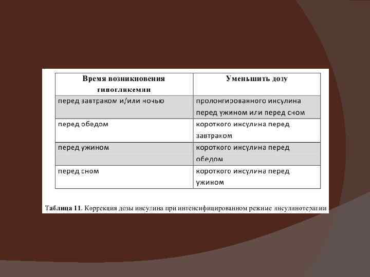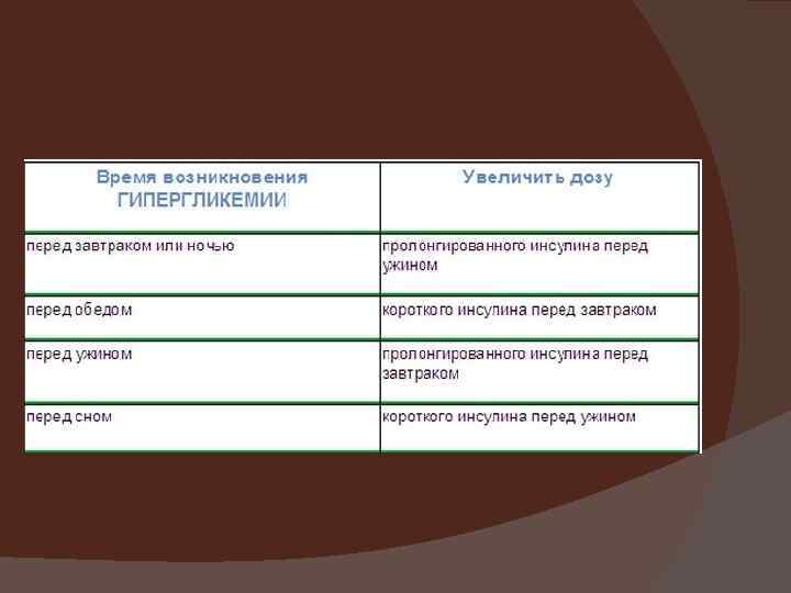 Правила коппекции дозы инсулина Гипергликемия: ü Стресс, инфекция ü Много ХЕ ü Мало инсулина ü Гипогликемия