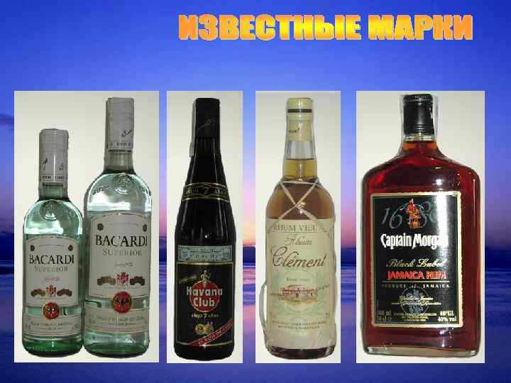 White (light, silver, blanc) – БЕЛЫЙ, прозрачный ром, деликатный и пряный, изготавливаются методом непрерывной дистилляции. Не выдерживаются, либо выдерживаются до 1. 5 лет, а затем фильтруются. Golden (oro, amber, paille) – ЯНТАРНЫЙ, нефильтрованый ром, выдерживается в бочках до 2 лет, не фильтруется, часто для цвета добавляется карамель. Dark (black, negro) – ТЕМНЫЙ, густой, полнотелый ром, ароматный, производится методом двойной перегонки в медных кубах, выдерживается в бочках не менее 3 лет. Aged (anejo, vieux) – ВЫДЕРЖАННЫЙ, ром для знатоков, наподобие хорошего коньяка или виски. Выдерживается в бочках 5 -8 лет. Single mark – ВИНТАЖНЫЙ ром, сродни элитному виски. Разливается без купажирования, часто без понижения крепости. Редкий вид. Испания, Куба, Мексика, Пуэрто -Рико и пр. Ямайка, Мартиника, Барбадос, Гвиана , Тринидад Наиболее характерен для Французских колоний Мартиника