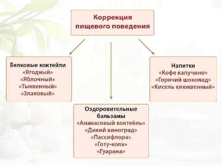 Коктейль «Ягодный» Тонизирующий коктейль, обогащенный сублимированными ягодами клубники и клюкви, соком ежевики и экстрактами гуараны, малины, черники, брусники. Коктейль «Злаковый» Коктейль, способствующий улучшению работы ЖКТ, содержит яблочный и апельсиновый соки, пшеничные и ржаные отруби, экстракты мате, гуараны, гарцинии камбоджийской. Коктейль «Тыквенный» Овощной коктейль содержит сублимированные тыкву, кабачок, морковь, петрушку и укроп, экстракты грецкого ореха, каштана, гуараны, гарцинии камбоджийской. Коктейль «Яблочный» Вечерний коктейль содержит экстракты мелиссы, мяты, пассифлоры, яблочный сок и корицу