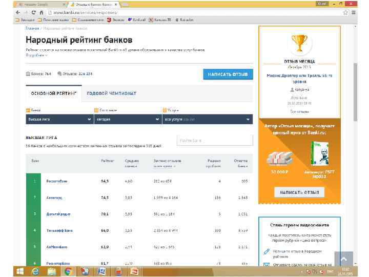 Отзывы о банке • Рассказы ваших родных и друзей; • Отзывы, которые можно найти в интернете на различных сайтах и форумах; • «Народный рейтинг» банков – http: //www. banki. ru/services/responses/