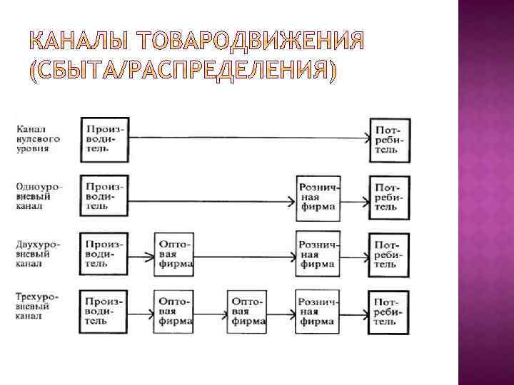 выбор каналов сбыта; обоснование оптимального метода сбыта; выбор посредников и определение приемлемой работы с ними; организация сервиса.