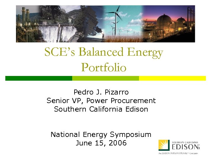 SCE’s Balanced Energy Portfolio Pedro J. Pizarro Senior VP, Power Procurement Southern California Edison National Energy Symposium June 15, 2006 1