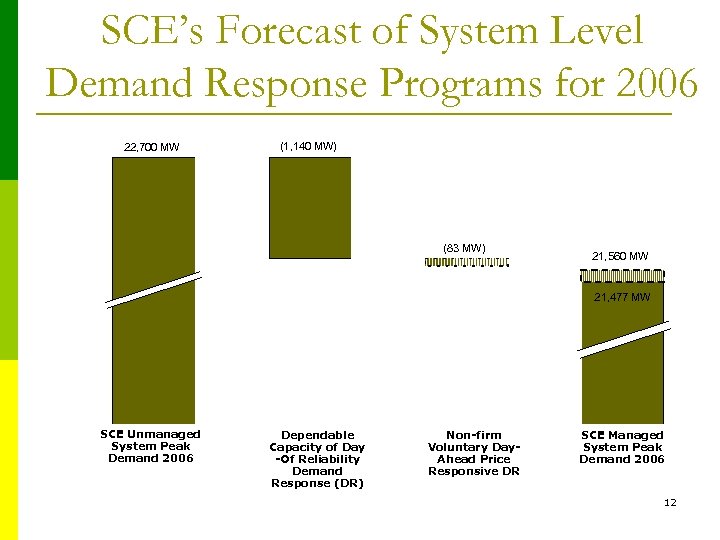 SCE’s Forecast of System Level Demand Response Programs for 2006 22, 700 MW (1, 140 MW) (83 MW) 21, 560 MW 21, 477 MW SCE Unmanaged System Peak Demand 2006 Dependable Capacity of Day -Of Reliability Demand Response (DR) Non-firm Voluntary Day. Ahead Price Responsive DR SCE Managed System Peak Demand 2006 12