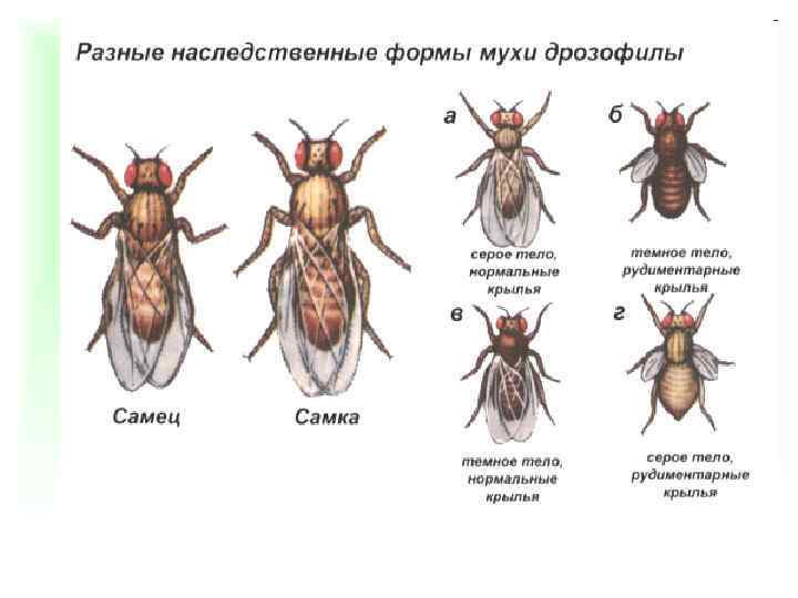 В качестве объекта Т. Х. Морганом была выбрана плодовая мушка дрозофила: – очень плодовита (за год 25 поколений); – быстро развивается (от яйца до взрослой особи 10 дней); – мало хромосом (4 пары); – имеет много признаков, которые могут наследоваться (цвет глаз, форма крыльев, окраска тела, форма тела и др. ).