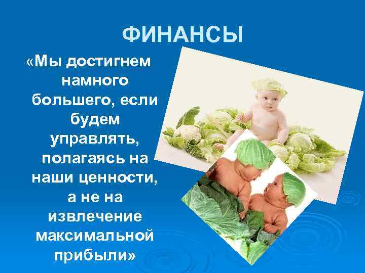 ФИНАНСЫ «Мы достигнем намного большего, если будем управлять, полагаясь на наши ценности, а не на извлечение максимальной прибыли»