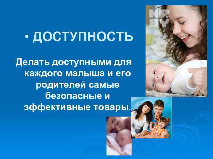 • ДОСТУПНОСТЬ Делать доступными для каждого малыша и его родителей самые безопасные и эффективные товары.