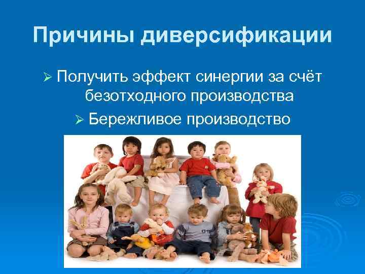 Причины диверсификации Ø Получить эффект синергии за счёт безотходного производства Ø Бережливое производство