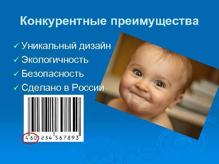 Конкурентные преимущества ü Уникальный дизайн ü Экологичность ü Безопасность ü Сделано в России