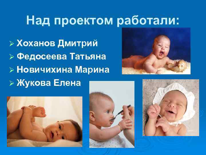 Над проектом работали: Ø Хоханов Дмитрий Ø Федосеева Татьяна Ø Новичихина Марина Ø Жукова Елена