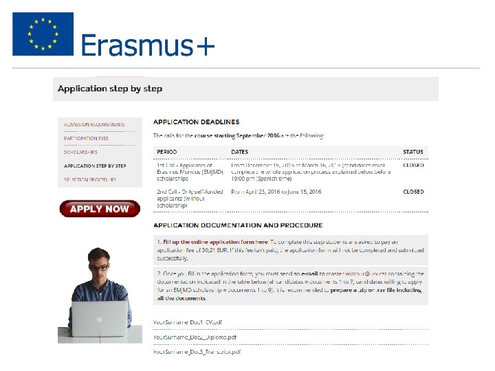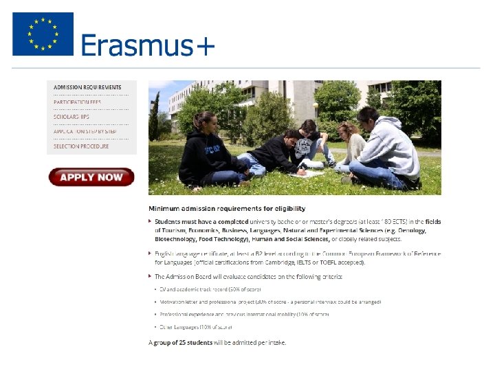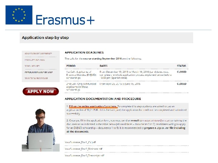 Aplică online Verifică cerințele aplicării • Eligibilitate • Reușita academică, experiența • Abilitățile lingvistice • Scrisoarea de motivare • Referințe • Documente necesare • Data limită!