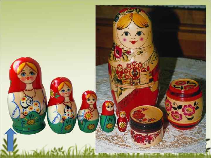 Matryoshka–doll, a symbol of Russian Folk art Matryoshka doll is a Russian nesting doll. Its name is a diminutive form of the Russian female name "Matryona". The idea of a matryoshka-doll was brought to Vyatka by two monks from the town of Zagorsk at the beginning of the XX th century. At first at-home masters started to make matryoshka-toys for their little kids.