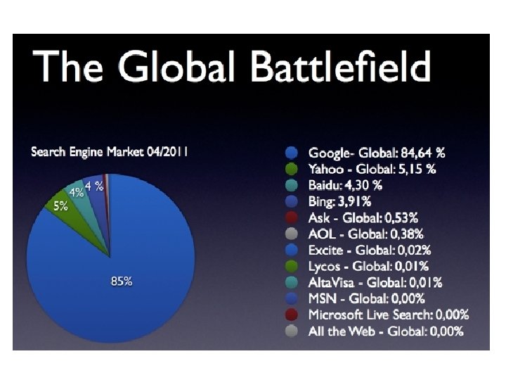 Number of search engine queries - US About half a billion per day Com. Score global share
