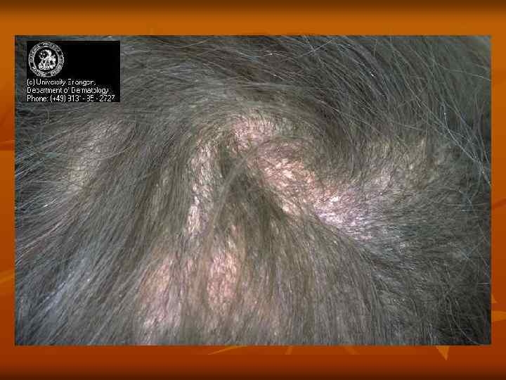 Сухая себорея у взрослых n n У взрослых волосы истончаются, кожа сухая Обильное мелкопластинчатое шелушение Фолликулярный кератоз На волосистой части головы обильная перхоть