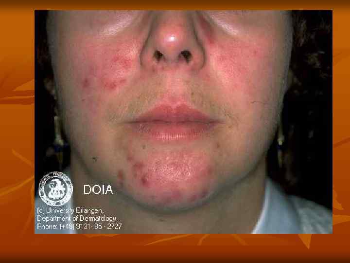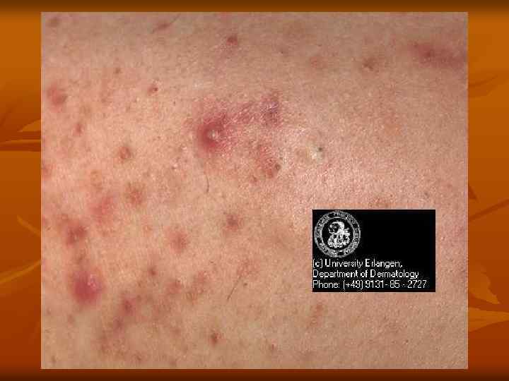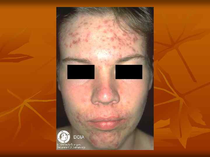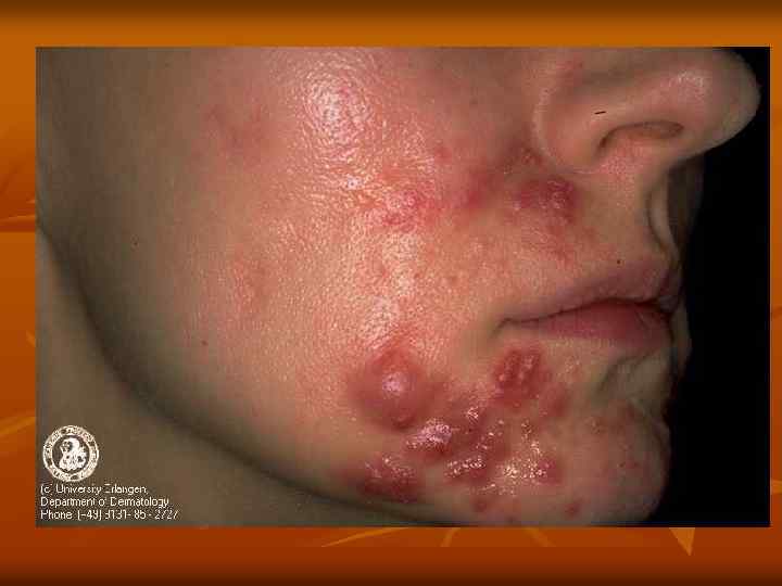 Факторы риска n n Юношеский возраст Эндокринные нарушения Жирная себорея. Комедоны. Инфекция (стафилококк, коринебактерии акне)