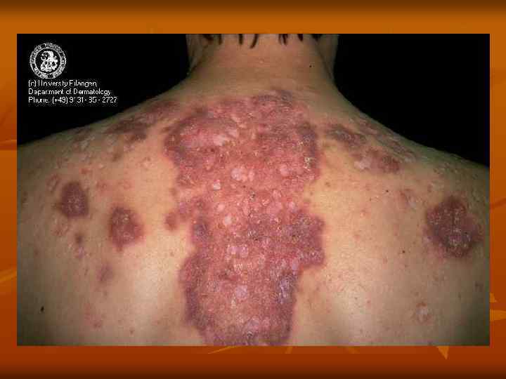 Излюбленная локализация n n Волосистая часть головы Лицо Кожа груди Межлопаточная область