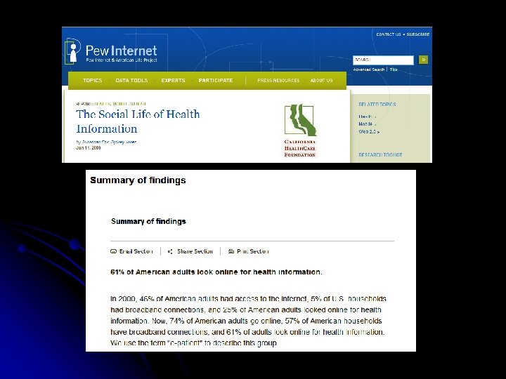 Trust and Sources of Health Information The impact of internet and its implications for health care providers l l Arch Intern Med, 2005 Authors Affiliations: United States l l l CDC Geroge Mason University (VA) Universty of North Carolina Harvard University (MASS) 6369 interviews 2
