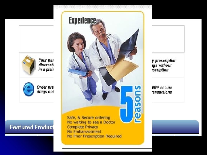 SELLING ARGUMENTS 1. Better from us: • Economical reasons • Privacy issues • No prescription 2. Don’t worry: • Service quality • Drug quality • It is legal