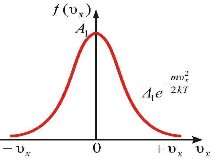 Приведённое выражение и график справедливы для распределения молекул газа по x-ым компонентам скорости. Очевидно, что и по y–ым и z–ым компонентам скорости также можно получить: