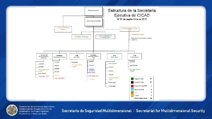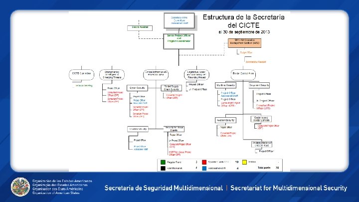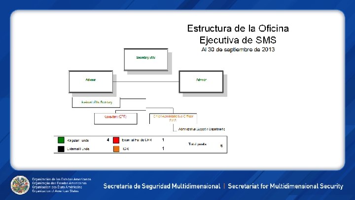 3. Estructura Organizacional SMS y Capital Humano SMS Staff 5 CICTE Inter American Committee against Terrorism 14 - 10 CICAD Inter American Drug Abuse Control Commission 35 5 4 - Local CPR 75 Secretariat for Multidimensional Security 45 30 TOTAL SMS 151 1 DPS The Department of Public Security 21 40 16