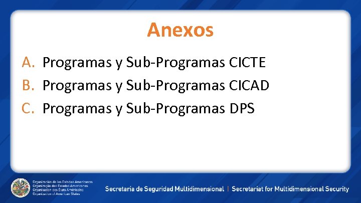 Anexos A. Programas y Sub-Programas CICTE B. Programas y Sub-Programas CICAD C. Programas y Sub-Programas DPS