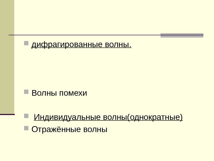 дифрагированные волны. Волны помехи Индивидуальные волны(однократные) Отражённые волны