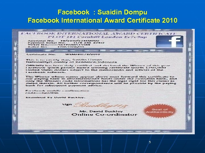 Facebook : Suaidin Dompu Facebook International Award Certificate 2010 5