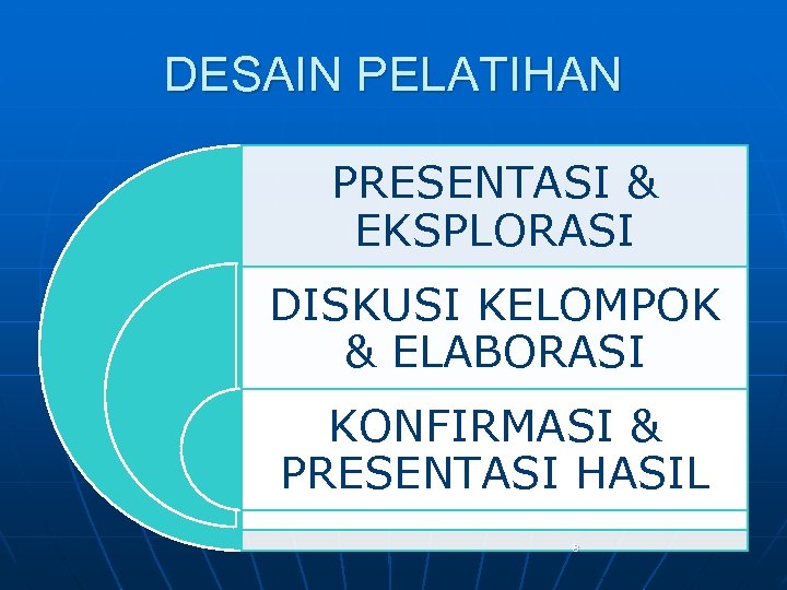DESAIN PELATIHAN PRESENTASI & EKSPLORASI DISKUSI KELOMPOK & ELABORASI KONFIRMASI & PRESENTASI HASIL 8